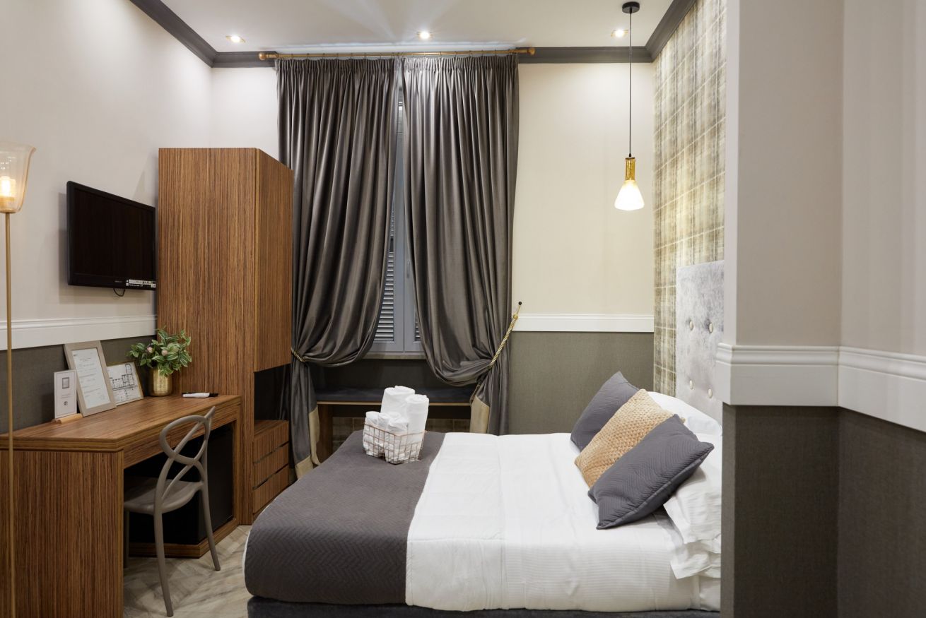 Le camere Deluxe del nostro hotel esprimono il perfetto equilibrio tra lavoro e relax. Particolarmente ampie, dal design di ricercata semplicità. La camera doppia è composta da un letto matrimoniale o da due letti separati su richiesta